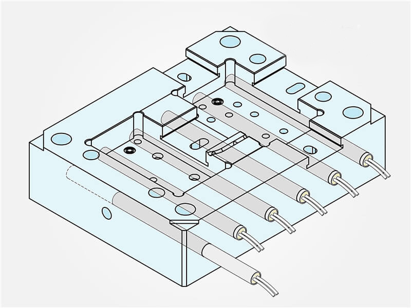 傳統塑料模具或橡膠模具中,將單頭加熱管置于金屬模具板內部,確保模具流道中的塑料、橡膠材料始終處于熔融狀態,并且始終保持比較均勻的溫度。