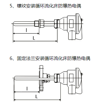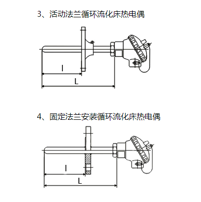 注2:循環流化床熱電偶如選用固定法蘭或螺紋安裝方式,用戶訂貨時必須標注法蘭標準/法蘭規格/法蘭材質或螺紋尺寸/螺紋材質要求。