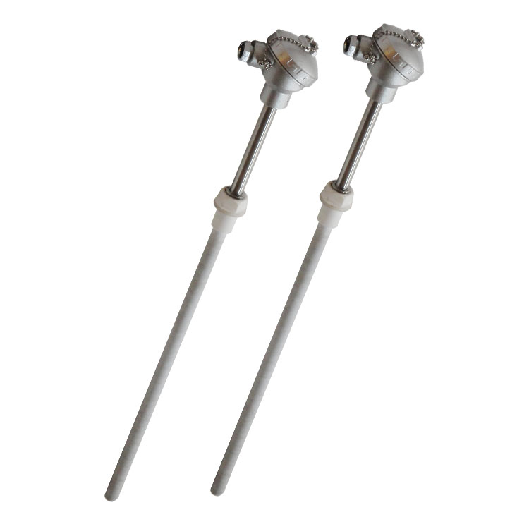 I.金屬、合金溶液腐蝕—采用鈦酸鋁防腐材質(zhì),內(nèi)裝小直徑剛玉管或者石英管,并充保護氣氛形成雙層抗腐蝕耐溫非金屬(插入部分)保護套、內(nèi)裝剛玉絕緣管或者鎧裝結(jié)構(gòu)組成的測溫熱電偶,可直接插入鋁溶液、銅溶液和銅鎳、鋁鎳合金溶液等各種金屬溶液中的溫度測量。耐溫可達1400度,一般只提供通徑式的結(jié)構(gòu)形式。